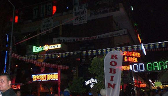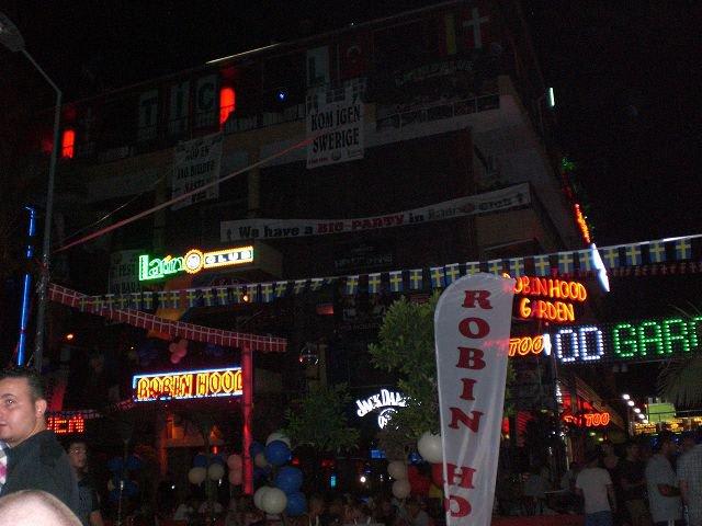 Der Latino Club befindet sich auf dem Dach des Robin Hood. Dieses "open air" ist eindeutig ein PLUSPUNKT, da man hier zumindest ab und zu etwas abgekühlt wird. Zudem hat man eine suuuper Ausblick über den Hafen und die anderen Diskos von Alanya. Die Stimmung ist dort immer gigantisch und die Musik (dank House und Dance) glücklicherweiße genau mein Fall. Tip: Wodka-Bull für 15 Lira nicht gerade billig, aber man bekommt dafür circa nen halben Liter (war zumindest bei uns der Fall, vielleicht hatten die da auch keine anderen Gläser mehr :-) )