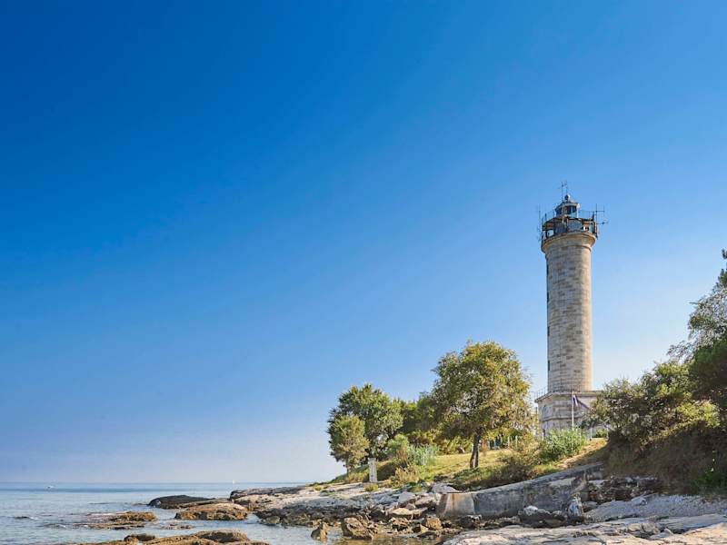 Der Leuchtturm Savudrija steht auf einer Landspitze etwa 9 Kilometer außerhalb von Umag. Auf den umliegenden Felsplateaus finden Sie herrliche Plätze zum Schwimmen und Sonnenbaden. Verfasst von HolidayCheck