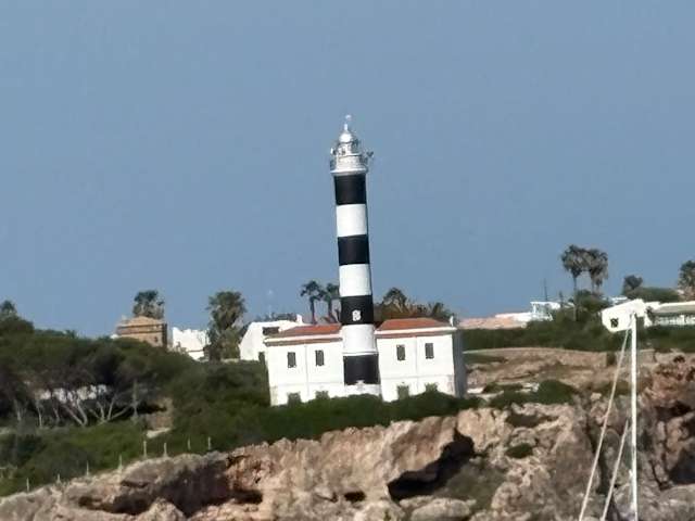 Schwarz-weiß gestreift und mit 82 Metern Höhe weithin sichtbar, erhebt sich der Leuchtturm als Wahrzeichen an den steilen Felsen von Porto Colom. Verfasst von HolidayCheck