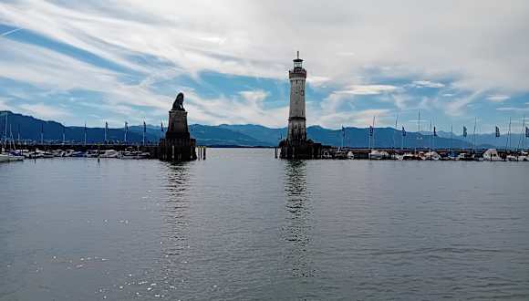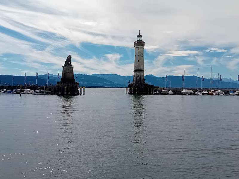Die Hafeneinfahrt von Lindau ist markant - auf einer Seite der bayerische Löwe, auf der anderen Seite der Leuchtturm. Fertig gestellt wurde der Hafen von Lindau im Jahr 1856. Hat man genügend Zeit bei einem Besuch von Lindau, lohnt sich ein Abstecher zum Leuchtturm - von hier hat man einen schönen Blick auf die am Hafen befindlichen Gebäude.