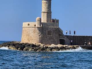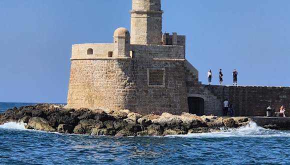 Der Leuchtturm von Chania wurde in der venezianischen Zeit am Ende des 16. Jahrhunderts gebaut. Er liegt gegenüber der damaligen mächtigen venezianischen Festung auf der westlichen Hafenseite. Auf den Ruinen der Fundamente dieses Leuchtturms wurde in der Zeit zwischen 1821 und 1840 ein neuer Leuchtturm in Form eines Minaretts errichtet. Hintergrund dieser Zeit: Um 1821 kam es zu einer griechischen Revolution gegen die osmanischen Herrscher. Der ägyptische Vizekönig unterstützte die Osmanen, den Widerstand der Griechen niederzuschlagen, womit bis 1840/41 Chania dem ägyptischen Vizekönig unterstand. Das spitze Kegeldach des in diesen Jahren errichteten Leuchtturms gibt es heute – nach der Restaurierung von 2006 - nicht mehr. Heute hat der Leuchtturm natürlich auch ein elektrisches Leuchtfeuer. Viele Informationen zu den Leuchtfeuern findet man in dem kleinen Nautischen Museum (siehe Reisetipp) am östlichen Ende der Hafenbucht.
