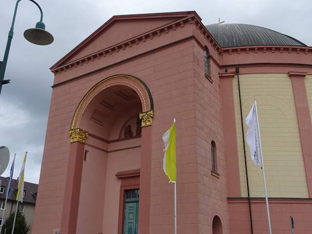 Die katholische Pfarrkirche wurde im 19. Jahrhundert im Stil eines römischen Pantheons erbaut. Im 2. Weltkrieg wurde die Kirche bis auf wenige Teile zerstört und Mitte der 1950er wieder aufgebaut. Die Kirche ist im Innenbereich ungewöhnlich - es dominieren orange und blau.