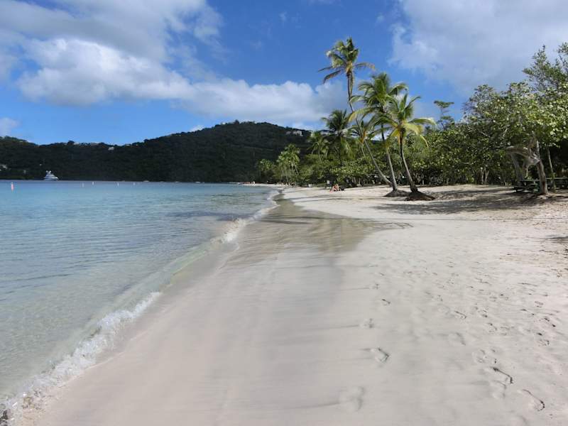 als Landausflug anläßlich einer Kreuzfahrt in Charlotte Amalie wählten wir Megans Bay - und waren etwas enttäuscht. Zwar war das Meer schön blau und der Strand schön hell, aber insgesamt wirkte alles etwas ungepflegt und vernachlässigt. Da drei Kreuzfahrtschiffe gleichzeitig im Hafen angelegt hatten, lag man am Strand fast übereinander. Während der Fahrt zum Strand hatte man einen tollen Blick auf die Schiffe im Hafen. - Unsere Tischnachbarn, die später erzählten, sie wären in die entgegengesetzte Richtung gefahren, hatten einen tollen Strand, an dem kaum etwas los war.