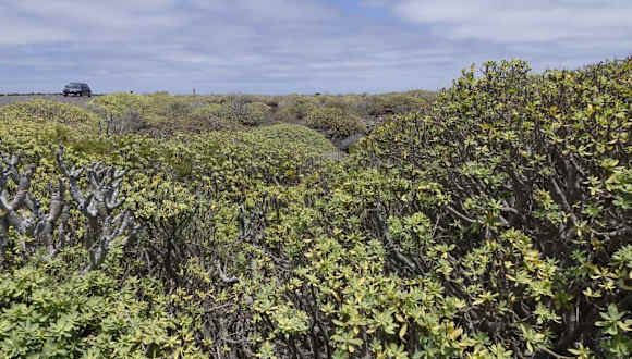 Im Norden der Insel Lanzarote liegt südlich von Orzola und westlich des Ortes Ye, ganz in der Nähe der Jameos del Aqua Cesar Manrique, dieses Gebiet welches auf Deutsch "Schlechtes Land" heisst. Es ist ein riesiges Lavameer welches vor ca. 3000 Jahren beim Ausbruch des Vulkans Monte Corona ausgebrochen ist. Im Untergrund entstanden viele Tunnellabyrinte, die bis heute noch nicht vollständig erforscht sind, die Luftlinie vom Vulkan bis zum Meer, also der Einbruchstelle Jameos del Aqua sind ca. 6 km. Vor diesem Einbruch ist aber noch ein anderes Einbruchsystem die Cueva de los Verdes bekannt, das Höhlensystem trägt den Namen Atlantida. Das ganze Gebiet ist geschützt als Naturdenkmal, es darf nicht bebaut werden, betreten darf man es nur auf ausgewiesenen Wegen. Auf diesem Gebiet wachsen die grünen Büsche , die Wolfsmilchgewächse auch Tabaiba genant.