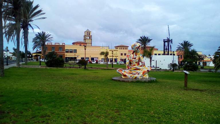 Die mehrfarbige Skulptur "Mamandyou" findet man nahe dem Einkaufszentrum El Campanario im Zentrum von Corralejo. Sie wurde von dem 1964 in der früheren spanischen Kolonie Sahara geborenen Künstler Lixber Reguera geschaffen und im Jahr 2015 an ihrem jetzigen Standort aufgestellt. Die auf einer vier Meter großen Plattform befindliche Skulptur ist 3,15 Meter hoch und 3,08 Meter breit. Sie symbolisiert die Mutter Erde und die Vereinigung zwischen der Natur und uns. Die Farben repräsentieren Fuerteventura (Sand, Vulkane, Erde, Sonne). Homepage: https://de-de.facebook.com/pg/Mamandyou-1637516569801623/posts/
