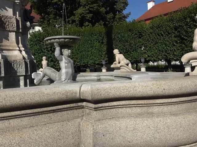 Der Marienbrunnen liegt an der östlichen Seite des Residenzplatzes. Er wurde bei der Neugestaltung des Platzes um 1780 errichtet. Eine Denkmalliste beschreibt ihn so: „Geschweiftes Becken mit eingestellter monumentaler Mariensäule, Figurenschmuck und Ketteneinfassung, von Maurizio Pedetti, Figuren von Johann Jakob Berg, die Marienstatue kupfergetrieben und feuervergoldet.