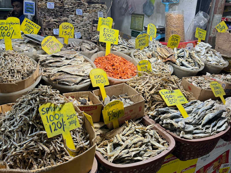 In Nuwara Eliya gibt es in der Stadtmitte eine "Einkaufsstraße". Auf der einen Seite sind kleine Läden, wie Bäcker, etc. durch einen Durchgang kommt man in eine art Innengang, dort werden Früchte, Gemüse, Gewürze, Fleisch und vieles mehr verkauft. Also auch vieles, was man bei uns gar nicht bekommt, z. B. hellgrüne-weiß gestreifte Gurken, die teilweise über einen Meter lang sind und andere exotische Früchte. Auf der anderen Straßenseite gibt es ein paar Schuhgeschäfte, alles aber kleiner als bei uns. Dort ist auch der Bazaar, wo Kleidung angeboten wird. Viele Firmen lassen in Sri Lanka Kleidung anfertigen, i.d.R. sind dort die Stücke mit kleinen Fehlern zu haben, trotzdem alles gut prüfen und ggf. macht Ihr ein Schäppchen. Die Händler werden sich un Euch reißen - *grins*
