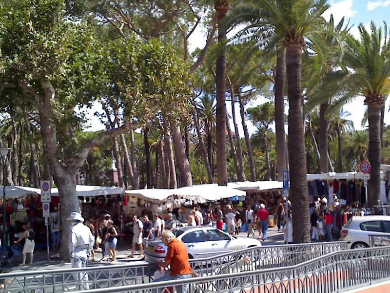 Markt in Bordighera Donnerstag Vormittag Strandpromenade Freitag Ventimiglia Stadtpark in Strandnähe bis abends Sanremo am Samstag Nähe Altstadt ganztägig Das Angebot reicht von Lebensmittel, auch von ansässige Bauern, bis Kleidung, Taschen, Schuhe, usw. Geschirr ,Haushaltswaren, Diverses Alle Ort sind bequem mit dem öffentlichen Bus, alle 20 Min zu erreichen. Parkplätze sind an Markttagen rar Das Angebot variert von billig bis teuer und ergänzt das Angebot im Ort