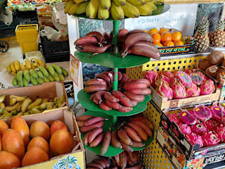 Der Städtische Markt Mercado Municipal wurde im Jahr 1986 eröffnet. Das mehrstöckige Marktgebäude war geschätzte 10 Minuten von unserem Hotel Puerto Palace entfernt. Es ist vor allem eine Einkaufsstelle für die Einheimischen. Wir haben zweimal den Supermarkt besucht und uns Kekse und Obst gekauft. Es gibt in der Markthalle einige Textilgeschäfte und auch eine Apotheke. Außerdem gibt es kleine Spezialitätenläden und diverse Bars und Imbisse, um Hunger und Durst zu stillen. Sehr schön fand ich ein Wandbild in der Markthalle Interessant fand ich auch die zwei alten urigen Bäume vor der Halle. In der Nähe der Markthalle direkt neben der verkehrsreichen Straße unter einen schattigen Baum hat ein Gockel mit seiner Hühnerschar seinen Platz gefunden.