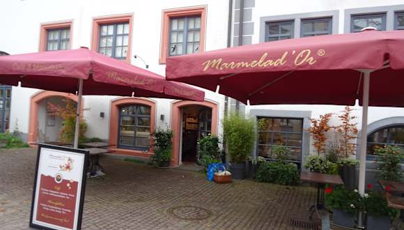 Das Marmelad`Or befindet sich gegenüber dem Heiliggeist-Spital am Rande des Fußgängerzonenbereichs. Sehr urig und gemütlich, tolle Auswahl an Kuchen und Gebäck - es gibt auch die Möglichkeit diverses Gebäck, Marmeladen etc als Mitbringsel zu erwerben. Können wir sehr gerne weiteremfpehlen.