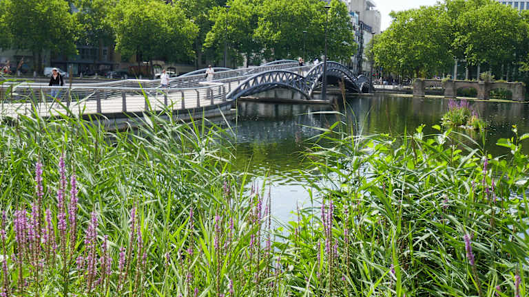 Der Mediapark in Köln liegt unweit der Köln City und ist mit der U-Bahn sehr gut zu erreichen. Angesiedelt um den künstlichen See mit Brücke, der sich inmitten des Parks befindet, sind neben zahlreichen Restaurants und einigen Hotels, das 1991 eröffnete Multiplex Kino, der Kölnturm als höchstes Bürogebäude in Köln, das Tanz Museum u.v.m. Am See sitzend kann man aber auch einfach nur die Seele baumeln lassen. https://www.mediapark.de