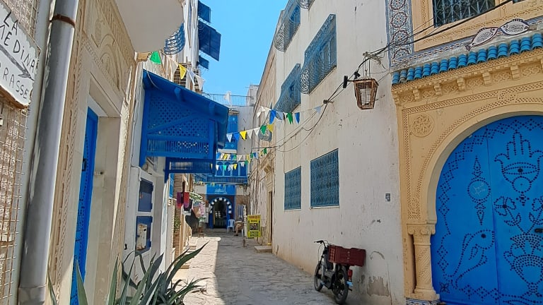 Die kleine aber feine Altstadt (Medina) von Hammamet schließt unmittelbar an das gut erhaltene Fort an und ist mit ihren weiß getünchten Häusern ein Highlight in dem kleinen Ort. Die blauen Läden und Balkone bilden hier einen wunderschönen Kontrast. In den engen Gassen finden sich ein paar nette Läden in den Kunst und Kitsch feil geboten wird. Die Medina ist bewohnt, es kann also sein das man von angenehmen Essensdüften betört wird. Und Achtung, in den schmalen Gassen kann es tüchtig warm werden.