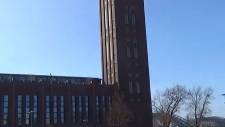 Der 1924 eröffnete, ca. 85 Meter hohe Messeturm von Köln befindet sich am rechten Rheinufer (am Deutzer Rheinufer). Von der Hohenzollernbrücke aus hat man bereits einen guten Blick über den Rhein hinweg zum Messeturm, an dessen oberen Ende man den Schriftzug von RTL sehen kann.