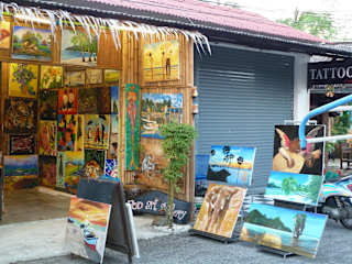 Die kleine Galerie findet man in der Jerung Street (kleine Straße gegenüber des Mukdara Resort). Die Künstlerin malt in kürzester Zeit die verschiedensten Motive. Man kann sich Bildvorlagen aussuchen oder welche mitbringen, z.B. Fotos. Auch Porträts werden toll. Oder man kauft vorhandene Exponate. Da die Bilder sehr schnell trocken genug sind, werden sie zum Transport gerollt (falls für den Koffer zu groß), und in ein stabiles Plastikrohr geschoben.