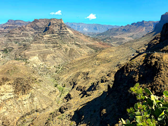 Mirador Degollada de Las Yeguas ! ...liegt an der "GC 60", diese Strasse führt von "San Fernando" über "Fataga" nach "Santa Lucia" bzw. weiter nach "San Bartolome de Tirajana"... Wenn man am "Freilichtmuseum Mundo Aborigen" VOBEIGEFAHREN IST !!! ( Dieses Museum liegt in einer Kurve etwas erhöht an der "GC 60" ) Ein Besuch lohnt sich nicht, da der Eintrittspreis viiiel zu hoch ist. Danach fährt man noch etwas weiter, dann kommt auch der o.g. "Mirador". Von hier aus, hat man einen fantastischen Ausblick, der geht zurück nach "Playa del Ingles" und "Maspalomas", auf der gegenüberliegenden Seite liegt: "Monte Leon I & II". ACHTUNG !! Bei unserem letzten Stop auf dem Parkplatz vom Mirador, wurde WIEDER aus einem UNVERSCHLOSSENEM PKW die Tasche mit allen Reise-Papieren und Bargeld geklaut. Dort stehen auch Leute, die etwas "Snick-Snack" verkaufen. Ab & zu wird dort auch Werbung für ein Restaurant (es liegt etwas weiter in Richtung Fataga an dieser Strasse ) gemacht, wer Glück hat bekommt auch einen Gutschein :-)) wir haben unseren wieder verschenkt. Dieses Restaurant soll sehr gute Speisen herstellen !! es liegt auf der linken Seite in einer Kurve, den Namen habe ich vergessen :-(