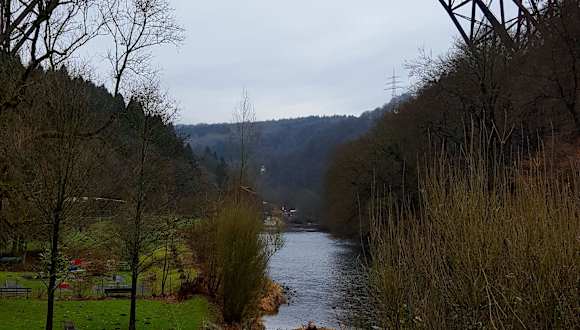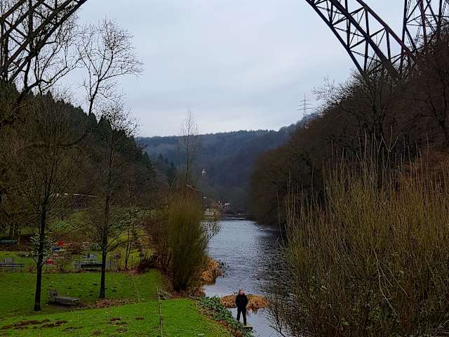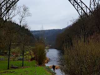 Die 107 m hohe, 491 m lange Brücke mit einer Spannweite des größten Bogens von 170 m ist die höchste Eisenbahnbrücke Deutschlands. Sie wurde 1897 fertig gestellt. Sie wird zwar immer noch renoviert, ist aber inzwischen wieder für den Eisenbahnverkehr freigegeben. Ein Besuch lohnt sich.