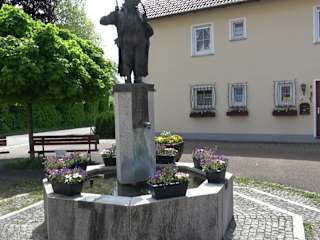 Mitten auf dem Dorfplatz, neben dem Rathaus steht der Mundingbrunnen. Es ist ein achteckiger Brunnen aus Betonelementen. In der Mitte ist eine Säule, darauf eine Statue. Gewidmet ist sie dem Munding, einem Gebrazhofener Original aus dem 19. Jahrhundert, um das sich viele Geschichten ranken. Adresse: Vogteistraße 16, 88299 Leutkirch im Allgäu Webseite: https://www.haiterbach.de/startseite Geodaten: QXP3+XW Leutkirch im Allgäu