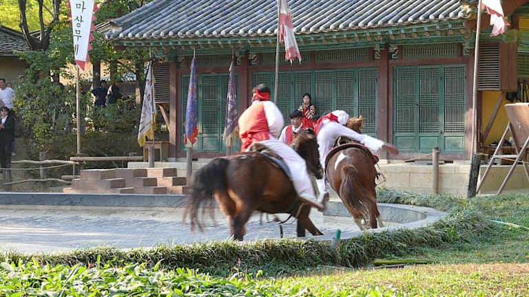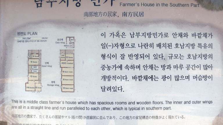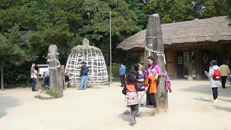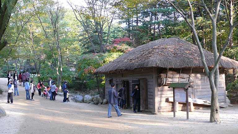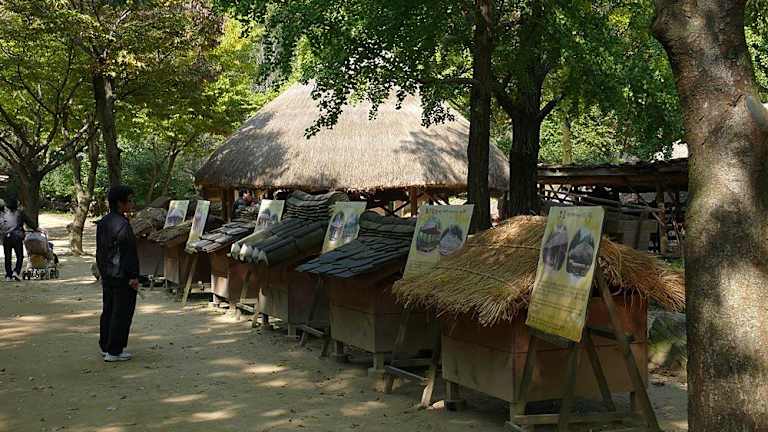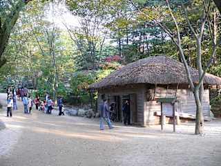 Das Museumsdorf heisst "Folk Village". Es ist vom Zentrum Seouls aus mit dem Überlandbus in einer guten Stunde zu erreichen. Gezeigt werden hier die Architekturen der Wohnhäuser und der Handwerke in den Gehöften, so wie sie noch vor gut 20 Jahren in Südkorea vor zu finden waren. Dabei unterscheiden sich die Architekturen aus dem Norden, Osten, Westen und Süden des Landes erheblich. Heute kann man in dem Folk Village dieses alles nachvollziehen, umrahmt von einem bunten Programm mit Reiterspielen, Akrobatik und der Möglichkeit zu unterschiedlichster Verpflegung.
