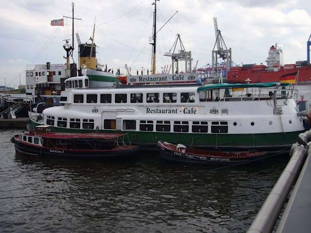 Das Ziel unserer Fahrt mit der Hafenfähre 62 war der Museumshafen Övelgönne am Schiffsanleger Neumühlen. Für unser verspätetes Mittagessen haben wir uns das Museumshafen-Café ausgesucht, das sich auf der D. E.S. Bergedorf – einer ehemaligen Hafenfähre - befindet. Hier kann man sich richtig vorstellen, welche Schiffe früher im Hamburger Hafens unterwegs waren. Auf der Speisekarte findet man unter anderem die typischen Hamburger Gerichte wie z. B. Labskaus und frischen Fisch, zum Kaffee werden außerdem leckere Süßspeisen angeboten. Wir wurden sehr freundlich bedient, das Essen hat in der doch recht rustikalen Umgebung gut geschmeckt und wir können das Museumshafen-Café somit guten Gewissens weiterempfehlen. Nach dem Essen empfiehlt sich ein Bummel am Hafen, Neumühlen ist wirklich ein schönes und gepflegtes Stückchen Hamburg. Noch ein Tipp am Rande: für Gaststättenbesucher ist die Toilettenbenutzung natürlich kostenlos. Die Bedienung hält 50-Cent-Stücke bereit, einfach nachfragen.