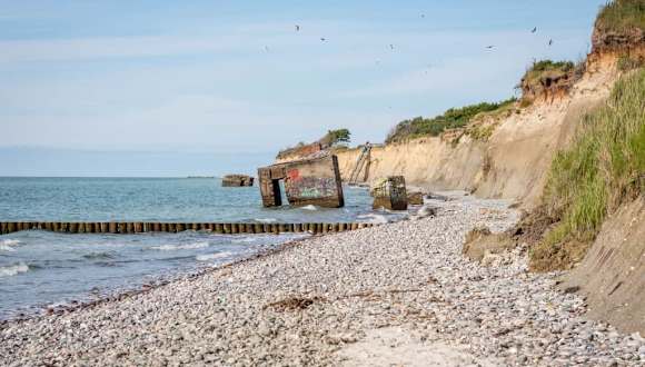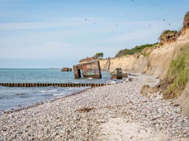 Im Nationalpark hat die starke Brandung zur Bildung eines hohen Kliffs geführt. Das ist ein ganz anderes Bild als die weiten, flachen Strände, die man an anderen Stellen der Ostsee findet. In dem Steilabhang der Kliffranddüne findet man Bruthöhlen von Uferschwalben.