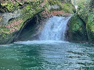 Rauschende Wasserfälle und tiefe Strudellöcher, riesige Gesteinsblöcke und gewaltige Felswände. Schöne Wanderung Natur pur.