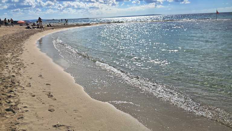 Hinter den Salinen liegt ein traumhafter Strand, der eher an die Karibik, als an das Mittelmeer denken lässt. Vom Parkplatz aus geht man durch dichten Wald zum Strand und findet da auch noch drei schöne Restaurants mit guter Auswahl und schönem Ausblick!