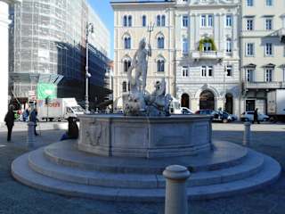 Der Neptunbrunnen wurde 1755 wurde auf dem Platz vor der Börse errichtet und stand hier bis 1920, als er zur Piazza Venezia „umziehen musste“. Nachdem der Börsenplatz 2008 zu einer Fußgängerzone wurde, kehrte der Neptunbrunnen an seinen ursprünglichen Platz zurück und schmückt jetzt wieder die Piazza della Borsa, die auch durch den Neptunbrunnen zu einem der schönsten Plätze von Triest wurde.