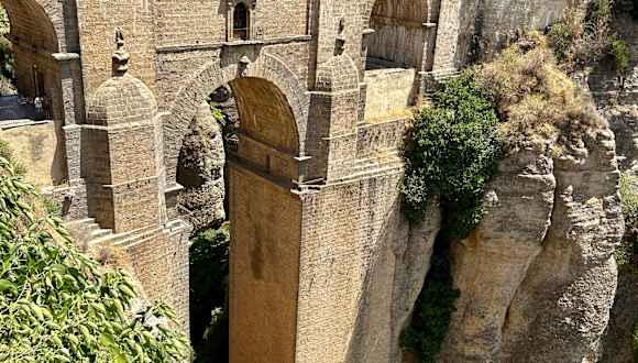Zu den ältesten Städten Spaniens gehört Ronda mit ihren bedeutenden Denkmälern der Stierkampfarena, und besonders der größten touristischen Attraktion der im 18.Jahrhundert erbauten Puente Nuevo der Neuen Brücke und ihren 4 Torbogen,die die beiden Stadtteile. .La Ciudad..die Altstadt und den neueren Stadtteil..El Mercadillo.. trennt. Diese gilt heute als Wahrzeichen der Stadt Ronda von dieser man einen einmaligen Blick in die 100m tiefe Schlucht hat..ein wirklich imposanter Blick in die Schlucht.