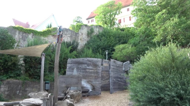 Direkt an der Historischen Mauer, am Schlossberg, im Wengertweg, befindet sich ein sehr schöner Spielplatz. Er ist komplett mit Holz gestaltet. Er hat eine andere Art, wird auch von größeren Kindern sehr gerne angenommen. Angelehnt an die alte Burg, kann man in den verschiedenen Holzteilen sehr gut spielen.