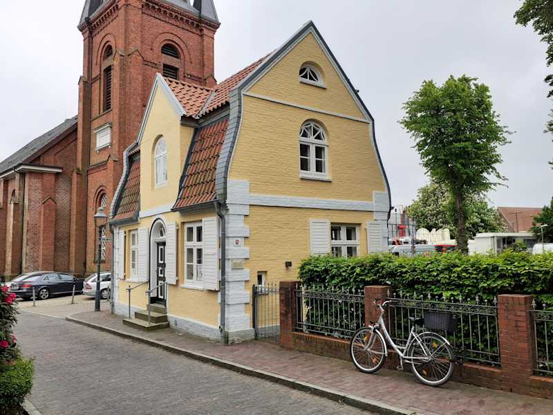 Bei unserem Spaziergang durch den Schlossgarten von Ritzebüttel sind wir auch am Offiziershaus (auch als Gärtnerhaus bekannt) vorbeigekommen. Dieses Gebäude stammt aus dem Jahr 1821 und diente erst als Offizierswohnung, ab 1892 kurzfristig als Meldebüro der Fremdenpolizei, bevor es Ende der 1890-er Jahre zur Wohnung des Schlossgärtners wurde (und dies bis in die 1950-er Jahr blieb). Es folgten mehrere diverse Mietverhältnisse. Ab 2000 stand das ehemalige Offiziershaus leer. Von 2012 bis 2013 wurde das Gebäude, das sich inzwischen in einem sehr schlechten Zustand befand, saniert. Diese Sanierung erfolgte in Zusammenarbeit zwischen der Stadt Cuxhaven und dem „Verein Bürger für das Schloß Ritzebüttel“. Heute ist das Offiziershaus / Gärtnerhaus wieder vorzeigbar und wird als Hochzeitshaus, Tagungsgebäude und Veranstaltungsort (z.B. für Geburtstagsfeiern usw.) genutzt – und man kann hier auch übernachten. Wenn man vom Schloss Ritzebüttel zur Martinskirche geht, so kommt man auch am Offiziershaus / Gärtnerhaus vorbei.