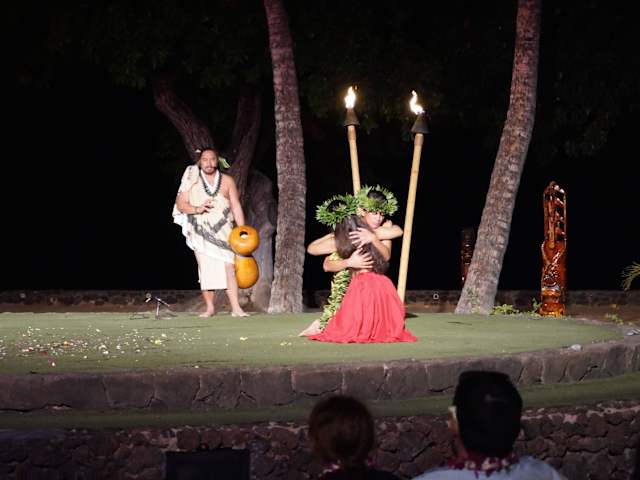 Bei Ankunft wird man mit Blumenkränzen begrüßt. Solange es noch hell ist, kann man über das Gelände schlendern und zusehen wie traditionelles Handwerk hergestellt wird oder einfach nur die tolle Atmosphäre direkt am Meer geniessen. Wenn es anfängt zu dämmern, begibt man sich langsam zu seinen Sitzplätzen. Wir hatten tolle Plätze, auf dem Rasen sitzend nahe an den Tänzern. Getränke wurden gebracht, aber man konnte sich auch welche an der Bar holen (falls es mal nicht schnell genug geht...). Dann gibt es endlich auch Essen - Buffetform, man wird in Gruppen hingeführt, alles hawaiianische Speisen - sehr viel und sehr lecker! Nach dem Essen werden dann die Tänze der Eingeboreren vorgeführt. Es geht um die Geschichte wie die Polynesen nach Hawaii kamen und auch Geschichten über die Götter, alles auch erklärt von einem Sprecher. Also es war ein wunderschöner Abend, den ich jedem auf jedem Fall empfehlen möchte! Hinweis/Insider-Tipp: Http://www. oldlahainaluau.com