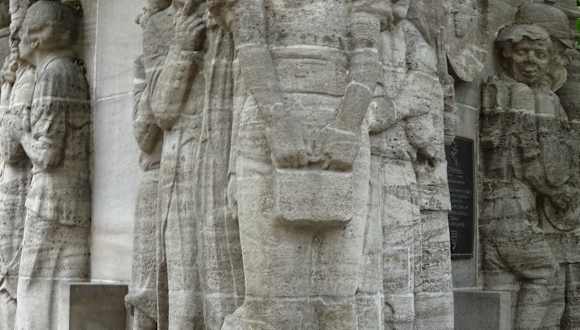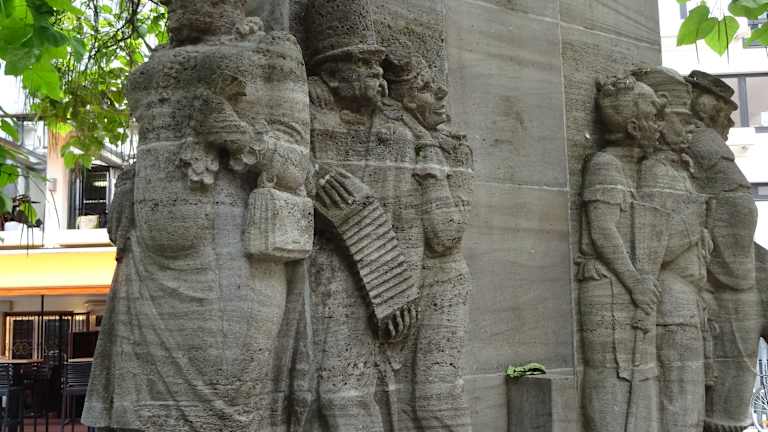 Auf dem Weg vom Alter Markt zum Heumarkt kamen wir auch beim Ostermannplatz vorbei. Auf dem Ostermannplatz befindet sich der berühmte Ostermannbrunnen. Die Grundsteinlegung zum Gedenken an den bekannten Sänger und Volksliederdichter Willi Ostermann ( 1876 – 1936 ) erfolgte am 11. November 1938, dem Elften im Elften als Beginn der Karnevalssaison. Der Brunnen wurde 1938 von dem Kölner Bildhauer Willi Klein gestaltet und am 16.Februar 1939 zum Weiberfastnachtstag eingeweiht. Willi Ostermann konnte laut eines Berichtes im Internet keine Noten lesen, komponierte und verfasste aber ab 1899 zahlreiche humorvolle Lieder, die er auch selbst als Sänger vortrug und bis heute zum karnevalistischen Erbe der Domstadt gehören. Ostermann hinterließ über 170 Liedtexte, vorwiegend in Kölner Dialekt. In Lebensgröße dargestellt sind am Brunnen insgesamt fünfzehn Figuren aus Ostermanns Liedern. Im Sockel sind auch Textzeilen aus seinen humoristischen Liedern Kölsche Mädcher künne bütze; Wenn in Colonia der Karneval beginnt und Och, wat wor dat fröher schön doch in Colonia eingemeißelt. Im Zweiten Weltkrieg blieb der Brunnen nahezu unbeschädigt. Seit 1967 wird die Willi-Ostermann-Medaille als höchste Auszeichnung des Kölner Karnevals vergeben. Der Brunnen hat mir gut gefallen.