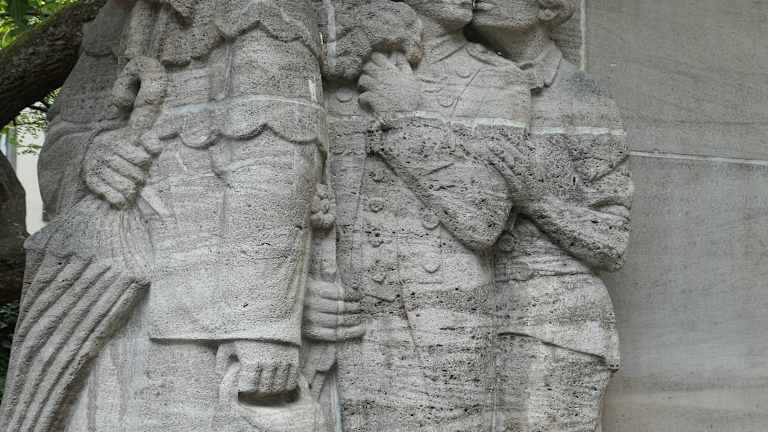 Bei unserer Besichtigungstour durch Köln sind wir auch zum Ostermannplatz gekommen, auf dem sich seit 1938 der Ostermannbrunnen befindet. Mit dem Ostermannplatz und dem Ostermannbrunnen wird Willi Ostermann, der Komponist, Textger und Sänger vieler auch noch heute bekannter Kölscher Lieder war, geehrt (geboren 1876, gestorben 1936). Es ist zum einen ein kleiner Brunnen mit dem Konterfei von Willi Ostermann, zum anderen ein Brunnen mit einem Denkmal aus Muschelkalk, in dem Figuren eingemeißelt sind, die Ostermanns berühmtesten Liedern entnommen sind. Im Sockel kann man diverse Texte aus mehreren seiner Lieder lesen. Eines seiner bekanntesten Lieder ist „Heimweh noh Kölle (auch bekannt als „Ich mööch zo Foß no Kölle gon“). Dieses Lied wurde wegen seines Refrains im Zweiten Weltkrieg von den Nazis verboten. Dieser Refrain lautet wie folgt: „Wenn ich su an ming Heimat denke un sin d’r Dom su vör mir ston, mööch ich direk op Heim an schwenke, ich mööch zo Foß no Kölle gon.“ ÜBERSETZUNG: Wenn ich so an meine Heimat denke und sehe den Dom so vor mir stehen, |möchte ich direkt Richtung Heimat schwenken, ich möchte zu Fuß nach Köln gehen.