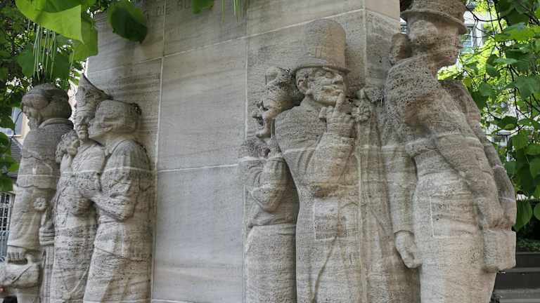 Der "Ostermannbrunnen" steht auf dem gleichnamigen Platz zwischen dem Alten Markt und dem Heumarkt im Martinsviertel in der Kölner Altstadt. Er wurde ab 1936 von dem Kölner Bildhauer Willi Klein zu Ehren des Volkssängers und Karnevalisten Willi Ostermann aus einem vierzehn Kubikmeter großen Muschelkalkblock gestaltet und 1939 eingeweiht. Die fünfzehn um einen dreieckigen Sockel gruppierten lebensgroßen Brunnenfiguren erinnern an Figuren aus Ostermanns Liedern. Im Sockel sind Textzeilen aus verschiedenen seiner Lieder in den Muschelkalk eingemeißelt. Homepage: https://www.stadt-koeln.de/artikel/71531/index.html