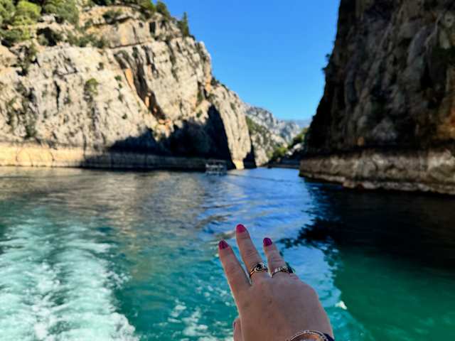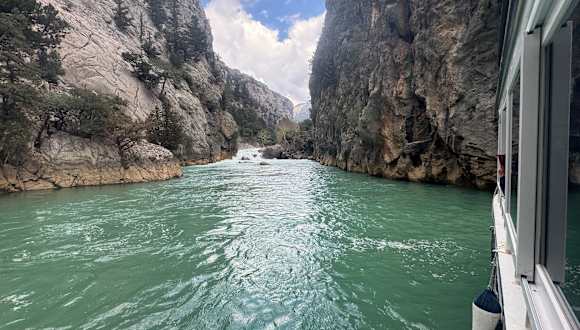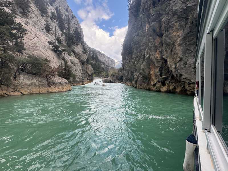 TAGESAUSFLUG Wir wurden pünklich vom Hotel abgeholt. Bootsfahrt auf Green Canyon war nicht besonders,ging ca 2 Std.Boot war sehr voll,man fühlte sich sehr unwohl,richtig eng.Getränke auf dem Boot zu teuer.Natur schön und tolle Farbe des Wassers.Auf der Rückfahrt gab es eine Badepause von 30 Minuten.Dann hieß es zum typisch türkischen Mittagessen.Wir sahsen an einer langen Tafel und bekamen Vorspeise,Hauptspeise und Nachtisch.An unserer Tafel wurde niemand satt,es war einfach zu wenig Essen.Wir hatten uns vom Essen mehr versprochen.Getränke musste man extra bezahlen.(halber Liter Bier 5 Euro,Cola 3 Euro,1,50 Euro Wasser allerdings nur 0,2l).Danach fuhren wir ins Shoppingscenter.Anschließend wurden wir wieder zurück ins Hotel gefahren.Alles in Allem,ich würde es nicht nochmal machen.Teuer und eher langweilig und viel zu viel Menschen auf dem Boot.Uns wurde auf der Rückfahrt gesagt, donnerstags ist es immer sehr voll.Wer es glaubt ;)