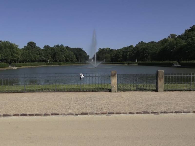 An der Hauptallee, vor dem Palais, liegt der Palaisteich. Der Teich wurde im Zuge des Neubaus des Palais 1715 angelegt. Mehrere Skulpturen und Vasen, schmücken die Uferseiten. Unter anderem die „Üppigkeitsvase“ von Antonio. Den Palaisteich ziert eine eindrucksvolle Fontäne.