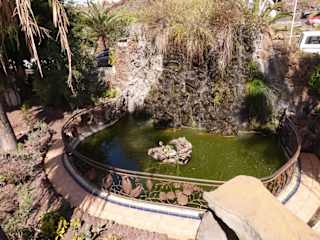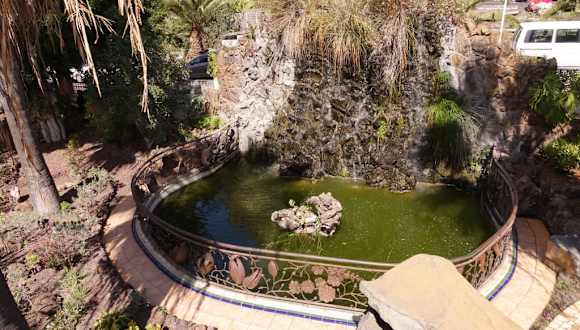Dieser kleine aber sehr interessante Stadtpark und botanische Garten liegt direkt an der Strecke von Los Llanos nach Puerto Naos. Carrretera General de Puerto Naos. Hier hat der Künstler Luis Morera etwas geschaffen was an den Park von Gaudi in Barcelona erinnert. Dschungelartiges Grün mit einem versteckten Teich, in welchem ein Frosch schon bei Tag quakte wird mit Treppen aufgelockert. Es wird umrandet von farbigen Mosaiken und mit metallenen Gittern. Selbst die Ruhebänke sind eine Sehenswürdigkeit. Auch die Toilettenhäuschen sind vollkommen anders gestaltet, so erkennt man sie kaum. Daneben ist ein Garten in welchem Kinder schaukeln und spielen können. Das alles ist den örtlichen Gegebenheiten angepasst, denn freie Flächen hat man auf der Vulkaninsel kaum. Der Eingang von der Straße ist natürlich das allerschönste.