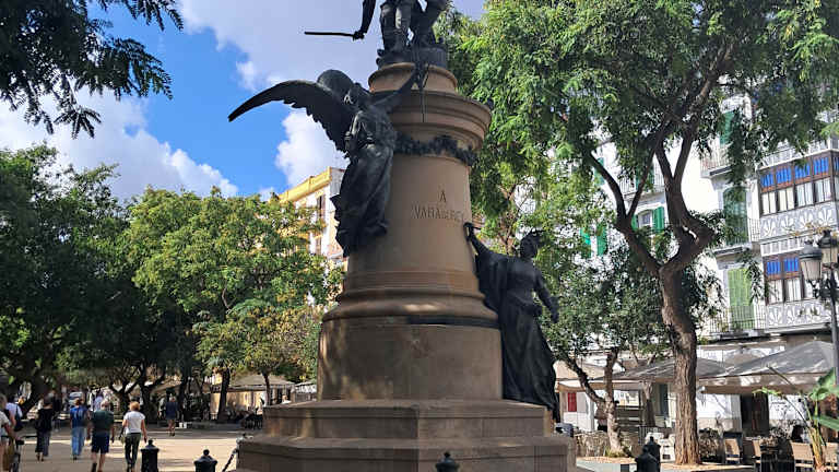 Der Paseo Vara de Rey ist seit diesem Jahr (April?) in seiner gesamten Breite Fußgängerzone - ein schöner Boulevard oder besser ein schöner riesiger Platz: großzügig angelegt, „luftig“ gestaltet, große schattenspendende Bäume, Bänke, einige Cafés / Restaurants, einige Geschäfte, aber - nichts Überladenes. Gefiel mir gut. Seinen Namen erhielt der Paseo nach einem Nationalhelden, dem General Joaquín Vara de Rey i Rubió. Sein Denkmal, das auf Veranlassung des Königs Alfonso XIII. 1904 errichtet wurde, findet man ca. mittig des Boulevards. Der ibizenkische General wurde 1898 im Kampf um die spanische Kolonie Kuba während einer Schlacht mit einer US-Armee tödlich verwundet. Auch seine zwei Söhne sollen in dieser Schlacht gefallen sein.