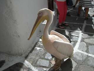 Die Pelikane von Mykonos sind schon soetwas wie ein Wahrzeichen der Insel + gehören genauso dazu wie das Nachtleben + die Windmühlen .Sie haben sich bestens an die vielen Touristen gewöhnt + können sehr gut mit deren Zuneigung leben .Sie sind ein beliebtes Fotomotiv fehlt nur noch , daß sie Geld dafür verlangen ,aber soweit sind sie noch nicht .
