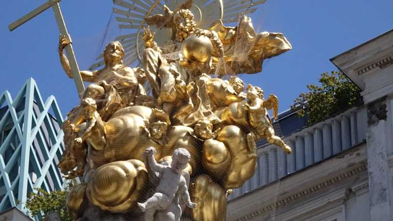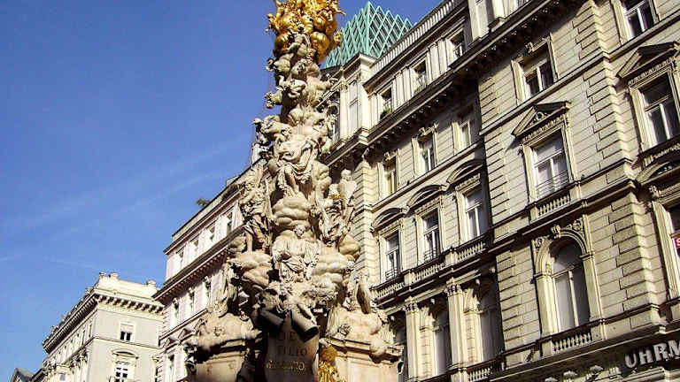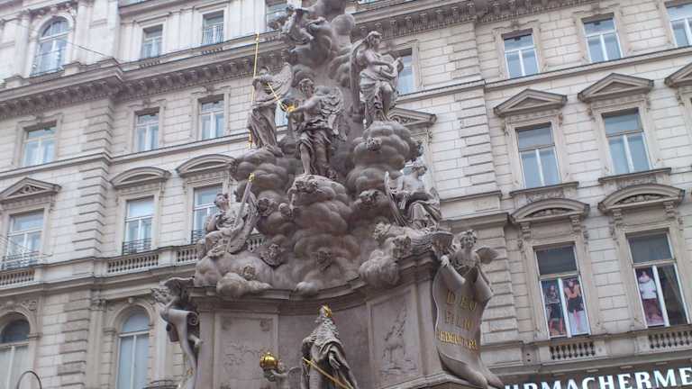 Ein riesiges und imposantes Denkmal, diese Pestsäule. Sie liegt in der Innenstadt am Graben und ist eine Säule der Dreifaltigkeit. Sie wurde 1693 geweiht. Nachdem diese Pestsäule in Wien entstanden war, gab es Nachahmungen im ganzen Land. Durch die Pest verlor Wien viele Tausend Menschen und man wollte mit diesem monumentalen Denkmal um Erlösung bitten.
