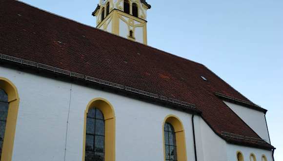 Das überragende Gebäude in Pfronten und geleichzeitig eine sehr große Sehenswürdigkeit. Erwähnt wird die Gründing 1361. Der Bau und die Ausstattung der jetzigen barocken Kirche ist eine Gemeinschaftsarbeit Pfrontener Handwerker und Künstler. Sehenswert sind die herausragenden Stuckarbeiten und Deckenfresken, der Hochaltar, etc. Eine Besonderheit 1. Güte stellt ein Gemälde des ital. Künstlers Pellegrini dar, das als einziges Kunstwerk nicht von Einheimischen geschaffen wurde.