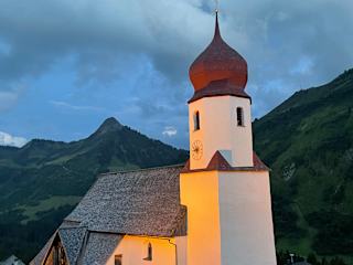 Im kleinen Ort Damüls steht ein liebliches Kirchlein, ein sehenswerter Kunstschatz.