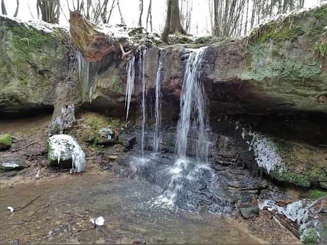 Ein Naturdenkmal der unvermuteten Art findet man am Rand eines Waldes, der sich nordöstlich des Burgkunstadter Ortsteils Ebneth ausdehnt: Den Pfersag-Wasserfall. Das mäandernde Bächlein Nussbrunnen fällt hier über eine angedeutet halbkreisförmige Steinstufe rund zwei Meter tief, bevor es durch einen Auwald als Teufelsgraben in Richtung Rodach zieht. Je nach Wassermenge fließt der Pfersag-Wasserfall nur als schmales Rinnsal über den mittleren Teil ab, nach heftigen Regenfällen aber auch wie eine Miniaturausgabe der Niagarafälle über die ganze Steinstufe als eine Art flüssiger Vorhang. Besonders schön sind strenge Frostwinter, in denen der Pfersag-Wasserfall zum Eiskunstwerk erstarrt und man dann sogar trockenen Fußes hinter den Eisvorhang gelangt. Die Rundwanderwege „Obermain-Hufeisen“ und „Gottesgarten Nord“ im Bereich der Gemeinde Redwitz führen direkt am Pfersag-Wasserfall vorbei.