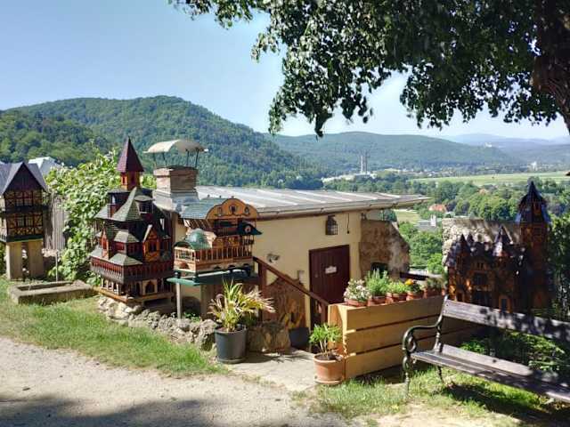 Wir sind am Ortsende von Pitten ( Parkplatz Erdbeerfeld ) in den 11 km langen Rundweg, der zu 80 % durch den Wald verläuft, eingestiegen. Zuerst geht es auf einen Hohlweg im Wald leicht bergauf, bis man auf eine größere Lichtung, mit Blick auf die Hügeln der "Buckligen Welt", trifft. Dann wird es aber interessant ! In der Nähe eines Bauerhofes muß man durch ein Gatter gehen, immer mit Blick auf ein Stallgebäude mit einen hoffentlich angebundenen Stier mit riesigen Hörnern. Bis man wieder auf einen Güterweg kommt muß man sich auf einen unmarkierten Pfad mit Brennnesseln und Dornen durchkämpfen. Vom kleinen Örtchen Leiding wandert man dann gemütlich leicht ansteigend hinauf zum Aussichtspunkt Weißjakl ( 576 m ), von wo man eine wunderschöne Aussicht auf Schneeberg und die Hohe Wand hat. Etwas steiler geht es in den Ort hinunter. Hier sollte man den Rosengarten und die am Hang aufragende Pfarrkirche und Felsenkirche ( geschlossen ) besuchen, bevor man wieder zum Ausgangspunkt zurück kommt. Der im Prinzip leichte Rundweg ist teilweise schlecht markiert. Mit GPS aber kein Problem. Wir haben ca. 3 1//2 reine Gehzeit benötigt. Höhenunterschied 350 Meter.