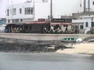 Im alten Hafen von Corralejo befindet sich die Pizzeria La Factoria, dort haben wir in den letzten Jahren immer gerne gesessen und auch gegessen. Man hat einen schönen Blick auf den alten Hafen und das ganze Geschehen vor Ort, weiter hinten im neuen Hafen sieht man die Fähren ankommen und wieder Richtung Lanzarote fahren, und selbstverständlich hat man eine super Aussicht auf Los Lobos. Das nur zur Lage, nun zum Essen, es gibt spitzenmässige Pizza, riesengross und mit knusprigem, dünnem Boden, auf Stein gebacken und schön dünn belegt, dafür aber nur mit den besten Zutaten (nicht so wie die typischen, in Deutschland erhältlichen dicken Pizzen, die vor Käse und Fett nur so triefen), oder auch frische Pasta, z. B. mit Meeresfrüchten oder anderen Saucen nach Wahl, das meiste für unter 10€. Darüberhinaus gibts Fischgerichte (sehr zu empfehlen gegrillte Sardinen mit Papas Arrugadas und Mojo Verde) u.ä. Die weibliche Bedienung dieses Jahr war das wahre Entertainment-Wunder, es hat wirklich auch in diesem Bereich viel Spass gemacht.