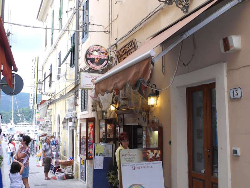 Das Restaurant San Guiseppe liegt an der Via Rivasoli 12 in Porto Azzurro. Sie hat rund um das überdachte Gebäude Tische aufgestellt, sodaß man bei Regen oder Sonnenschein nicht unbedingt im Restaurant sitzen muß. Das Angebot ist umfangreich und für Porto Azzuro noch günstig. Die Qualität der Speisen ist wirklich gut, wir hatten ein typisches Gericht bestellt, welches man in Italien an den Küsten überall bekommt. Es war Papardelle mit Vongole ,Miesmuscheln und Steinpilzen. Es schmeckte sehr gut und einige Einheimische hatten es auch bestellt. Was uns weniger gefiel, wir bestelleten 2 kleine Biere, bekamen aber 2 Große. Ansonsten wurden wir gut und schnell bedient.