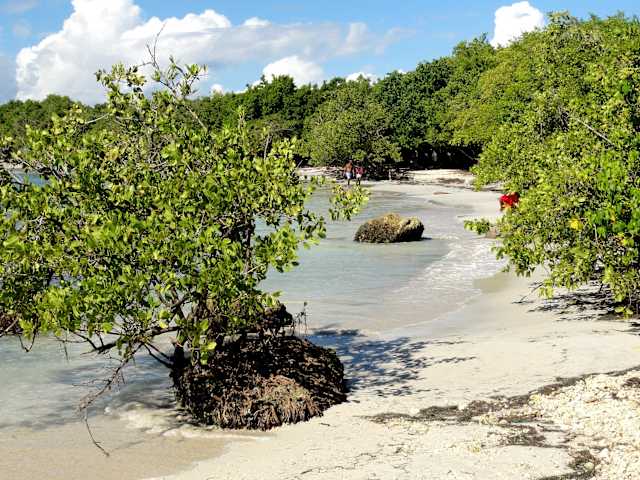 Am östlichen Stadtrand von Le Gosier hat aus meiner Sicht ein kleiner und etwas abgelegener Strandabschnitt Beachtung verdient: Die „Plage de Saint-Félix“. Auf der N 4 in Richtung „Saint-Anne“ fahrend, ist der Strand zur rechten Hand gut ausgeschildert. Zunächst durchquert man ein vorgelagertes Wohngebiet, um dann an einem kleinen Hafen zu landen, dem „Port du Pêche“ von Le Gosier. Umrundet man das Hafenbecken mit dem Parkplatzbereich, kommt man an die „Plage de Saint-Félix“, die sich in einem weiten Bogen über etwa einen Kilometer nach Westen erstreckt. Der Strand ist an einigen Stellen zwar etwas schmal, bietet aber mit einer dichten tropischen Vegetation viele Möglichkeiten, auch mal ein schattiges Plätzchen zu finden. Für Kinder ist diese Bucht geradezu ideal, da das Meer bis zur nahen Korallengrenze nur sehr flach abfällt und die Dünung entsprechend sanft ausläuft. Wie fast alle Strände Guadeloupes ist auch die „Plage de Saint-Félix“ unbewacht und gelegentlich häuft sich bei entsprechender Strömung Seetang am Strand an – gehört nun mal dazu und bietet gleichzeitig Gelegenheit, angeschwemmte Muscheln, Seeigel und Korallen zu sammeln. Mittags findet man einen ruhigen Verandaplatz mit Aussicht aufs Meer und den Hafen im Restaurant „L´Oursin de Saint-Felix“, welches frischen Fisch, Krustentiere und die klassischen kreolischen Gerichte zu fairen Preisen anbietet. Im Fazit: Ein Familienstrand abseits der Touristenströme, weit entfernt von der Schönheit der „Plage de Bois Jolan“, aber dafür sehr beschaulich und für einen entspannten Strandtag mit kleineren Kindern ideal.
