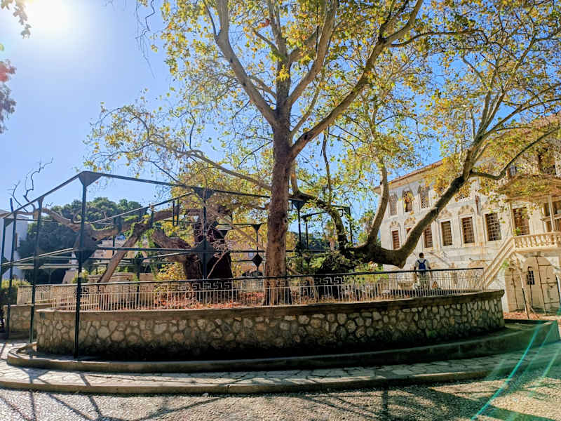 Die Platane soll 2400 Jahre alt und von Hippokrates gepflanzt worden sein, wohl als Schattenspender seines Open-Air-Lehrsaales für klassische Medizin. Später soll der Apostel Paulus an selbem Ort das Christentum gelehrt haben.