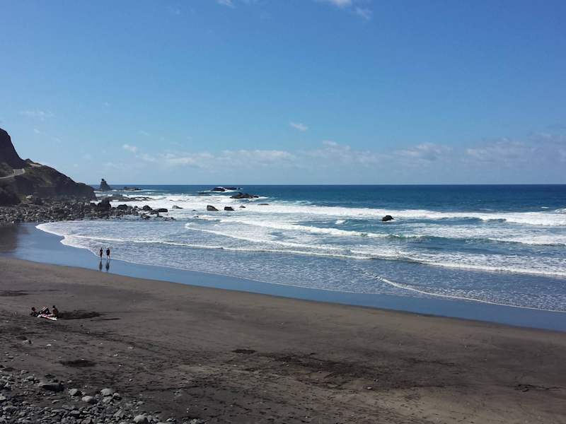 Für die die Teneriffa und einen wundervollen Strand mal abseits vom Tourismus kennenlernen möchten, ist dies hier ein hervoragender Tipp. In der Nähe von Benijos ganz im Norden der Insel ist ein total unberührter, fast ausschließlich von einheimischen besuchter, ganz schwarzer Strand, der/die "Playa Peligrosa Fuertes Corrientes". Allerdings nicht geeignet für Leute die nicht so gut zu Fuss sind, da er nur über einen sehr steilen aber mit Holzgeländer gesicherten Fussweg von oberhalb eines Felsens zu erreichen ist. Ins Wasser sollte man da auch nicht gehen, obwohl dies die Einheimischen tun, da ein Gefahrenschild "Gefährliche Strömung" aufgestellt ist. Der Sand ist herrlich, zwar ganz schwarz, aber auch ganz fein. Oberhalb dieses Strandes ist ein sehr gutes kleines Lokal, die Köchin schält die Kartoffeln noch selbst um Pommes zuzubereiten. Ganz zu schweigen von den Scampis, einfach lecker. Kaufen sie sich im Supermarkt eine Landkarte für wenige Euro und fahren Sie über die TF 12 bis nach Tunel del Bailadero, dann Richtung Taganana und dann eine kleine Strasse bis nach Benijo. Benijo fahren Sie durch, bis die Strasse nicht mehr weiter geht. Am Ende dieser Strasse ist das kleine Restaurant, mit einem wunderbaren Ausblick über den Atlantik von der Terasse aus. Für mich der schönste Fleck von Teneriffa. Falls sie ihn nicht finden sollten fragen Sie auf jeden Fall nach dem Weg, es lohnt sich. Ob Sie ihre Reiseleitung in ihrem Hotel danach fragen können sei dahingestellt, unser Reiseleiter hat ihn nicht gekannt.