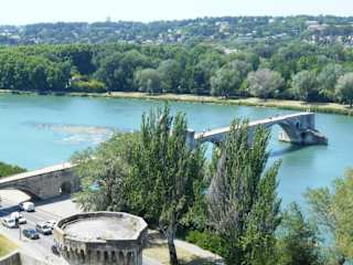 Als die heute in der Mitte des Flusses endende Brücke noch bis auf die Île de la Barthelasse führte, entstand das berühmte Lied, das sich auf ein Volksfest bezog, das auf der Insel unter den Brückenbogen stattfand. Die 14. Jahrhundert mit 22 Bogen errichtete Brücke über die Rhône wurde bei der Flut von 1668 so weit zerstört, dass nur noch vier Bogen übrigblieben. Man kann das verbliebene Brückenstück betreten, aber man kommt eben nicht über den Fluss bis zur Insel.